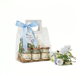 Blue & Bloom รังนกพรีเมี่ยม 4 ขวด ในกระเป๋าดอกไม้ประดิษฐ์