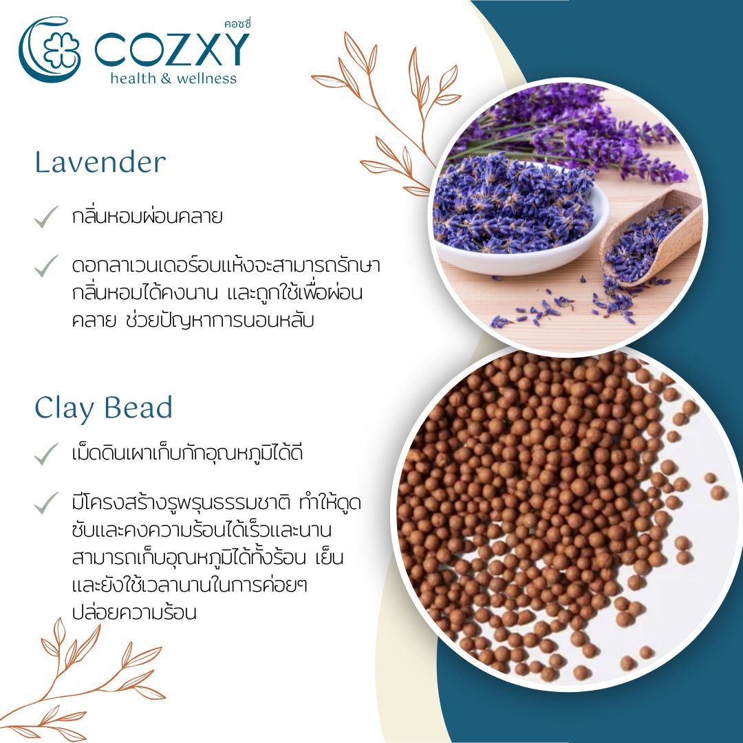 ไม่ว่าจะใช้เองหรือเป็นของขวัญ หมอนประคบจะเป็นเครื่องมือช่วยให้ผ่อนคลาย หอมกลิ่นลาเวนเดอร์ สามารถนำไปใช้ประโยชน์ได้หลากหลายรูปแบบ เป็นตัวแทนความใส่ใจในสุขภาพได้อย่างดี ใช้คู่กับปลอกหมอนเพื่อความรู้สึกสบายบนผิวหนัง