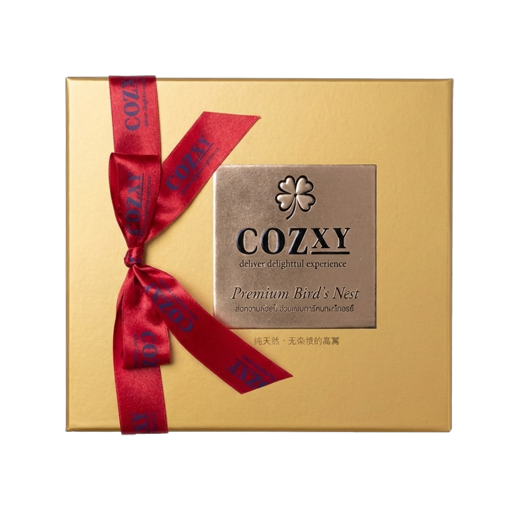 Cozxy Bird's Nest Box Of 5 Original Low Sugar. Our Cozxy Premium Gift Boxes are designed and manufactured so that anyone who receives them feels truly delighted and fulfilled. Not only does it have grand appeal that comes in various colors, but also with the high quality materials, they are created to last. Feel free to cater them for any of your special occasions.